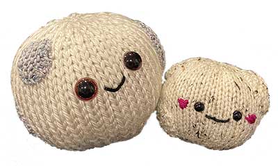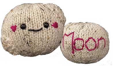 This little moon may not be made of cheese, but it is knitted to be soft and squishy! If you are a werewolf it is not a good idea to get this one. The name is embroidered on the back in yarn.