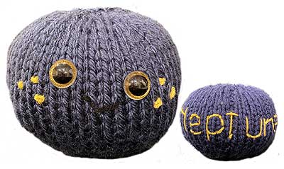 This beautiful blue planet also spins super fast and is super cold! Don't worry the little one can hide in your pocket to help keep your hands warm. And the big one likes PS5. The name is embroidered on the back in yarn.