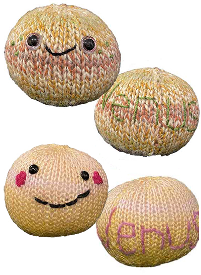 Also known as the Morning Star, Venus is the hottest planet in our solar system, and the highest in temperature too! Second from the Sun, it rotates in the opposite direction from Earth. So if you like to do the opposite of things, this is the planet for you. The name is embroidered on the back in yarn.